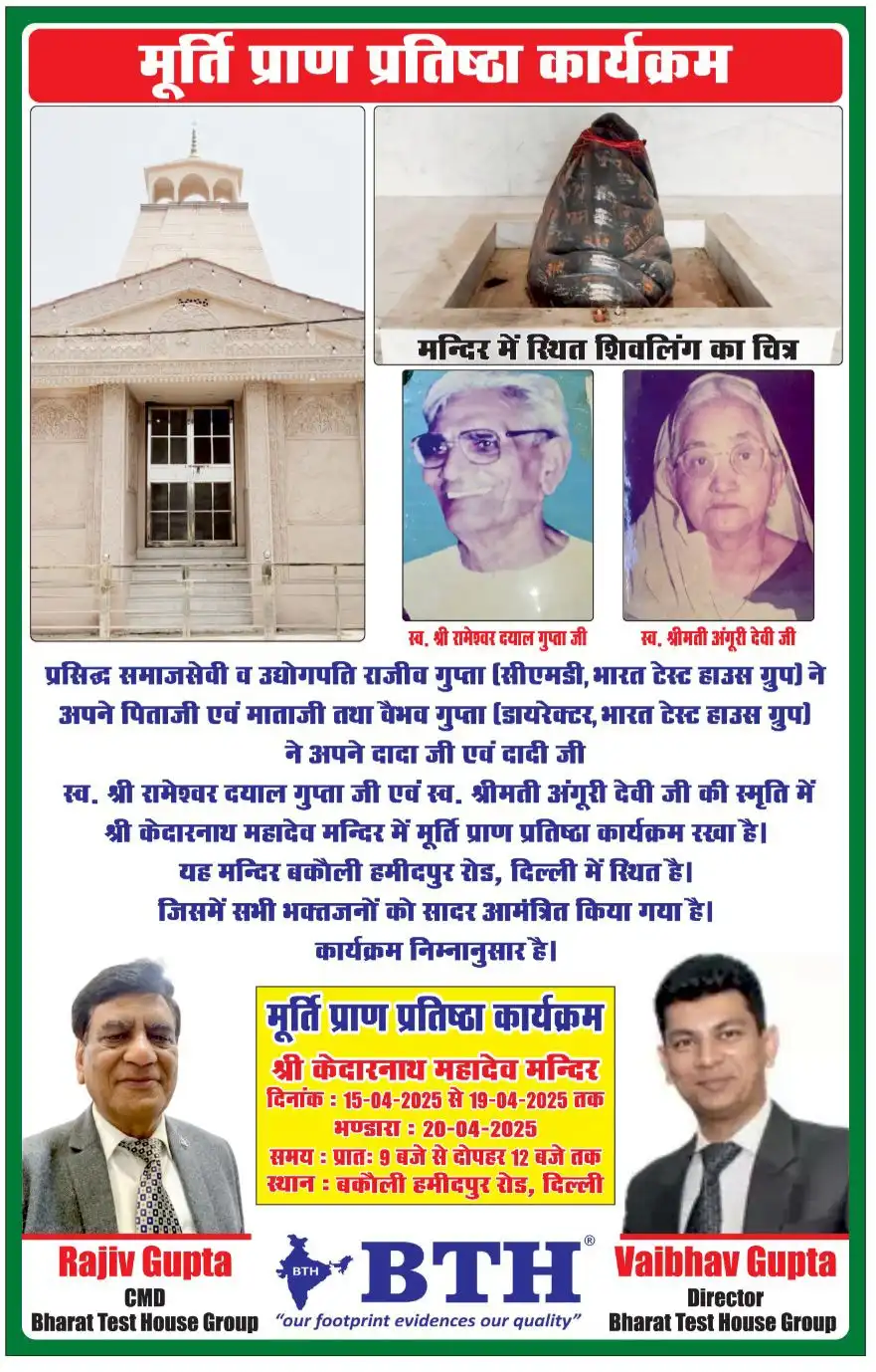 Murti Pran Pratishtha Karyakram at Shri Kedarnath Mahadev Mandir (Hamidpur, Delhi)