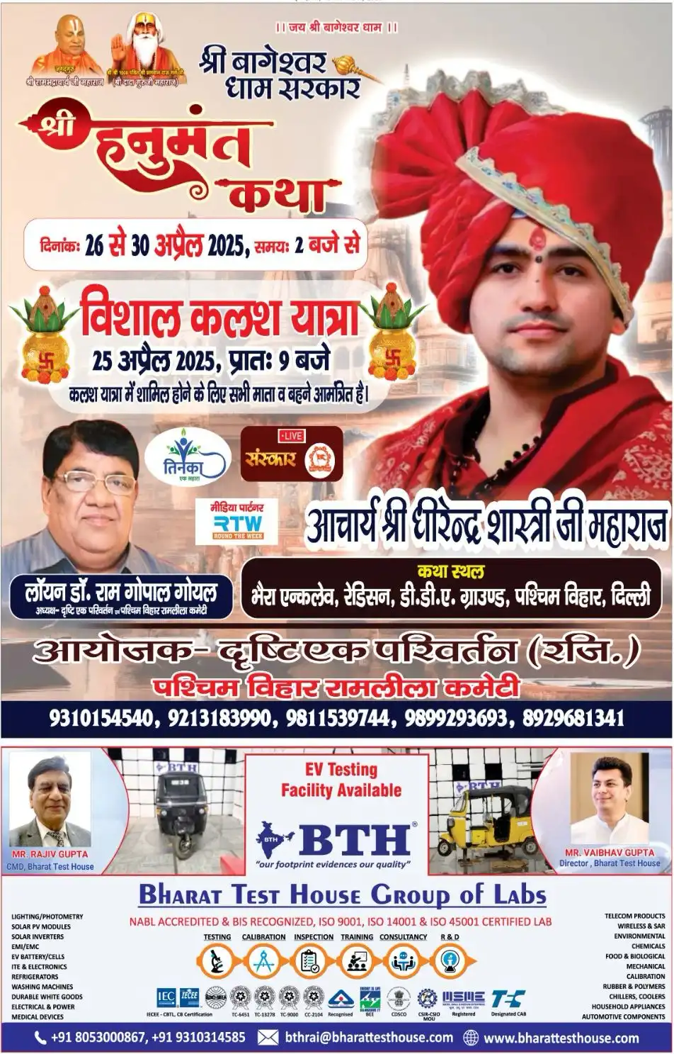 Shri Hanumant Katha by Bageshwar Dham Sarkar From Paschim Vihar