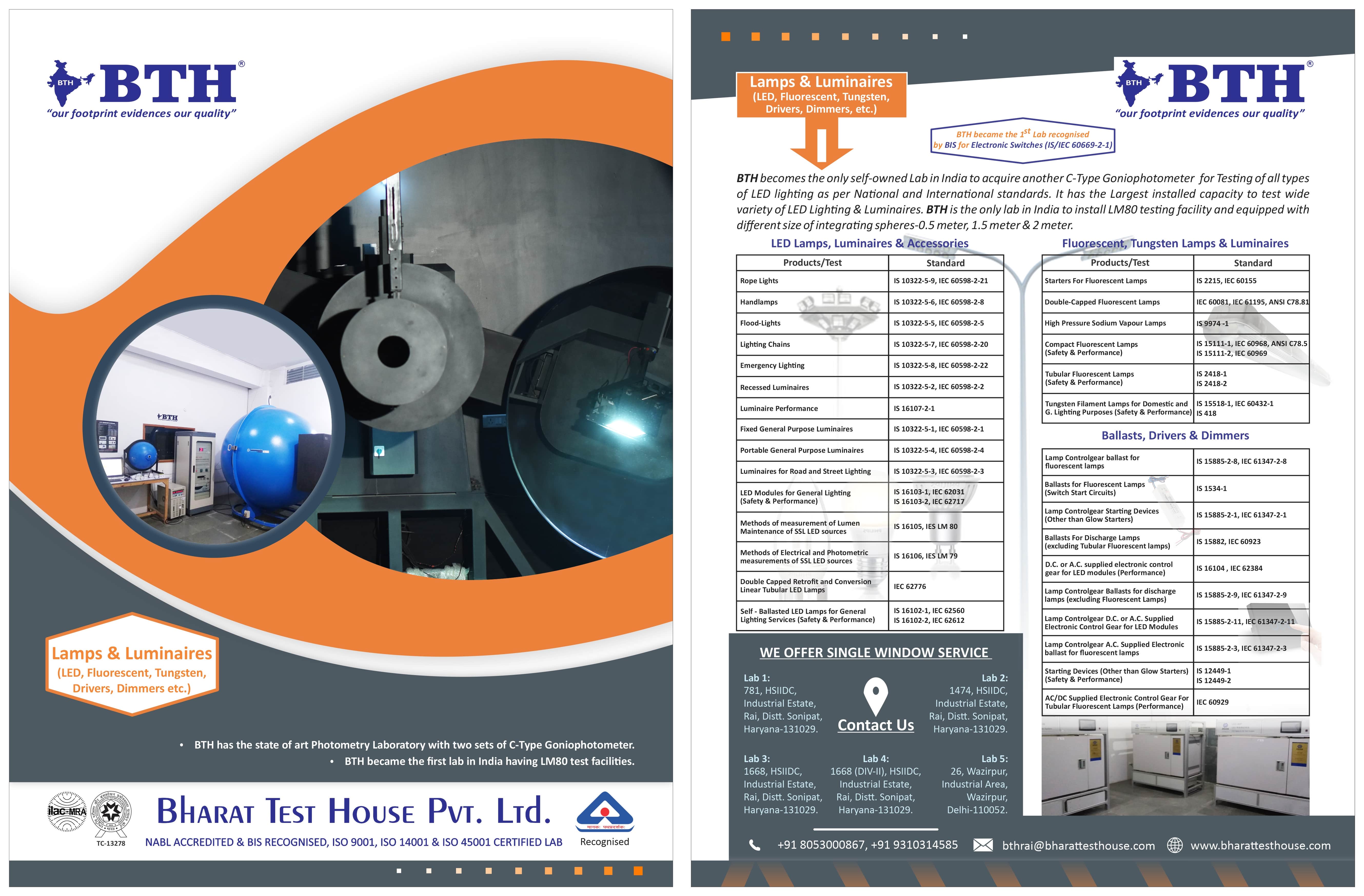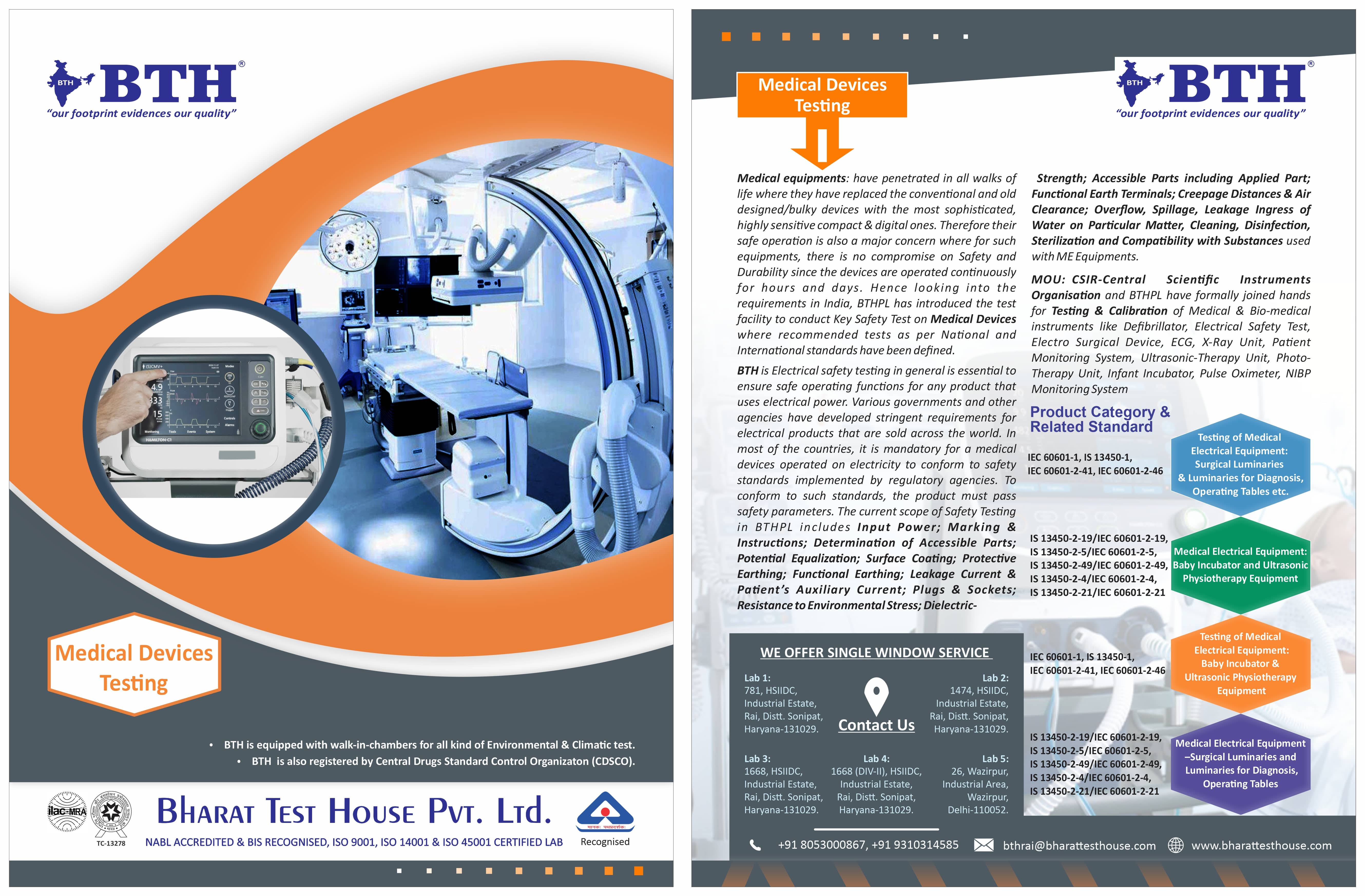 DISCLAIMER: NABL Accreditation status claimed by the lab pertains to NABL accredited scope available on NABL website as on date. BTH provides services which are under NABL accredited scope and also which are not covered under NABL accredited scope. NABL Accreditation status is informed on case to case basis before accepting any job as per customer request. BTH does not claim any NABL accreditation for the services which are not covered under the NABL scope.